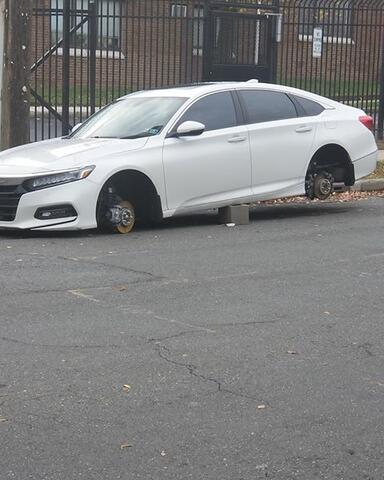 Police say they responded to reports of a vandalized vehicle on Prince Street and Muhammad Ali Avenue shortly before 1 p.m. where they arrived and found a car on cinder blocks after a suspect stripped the wheels off.