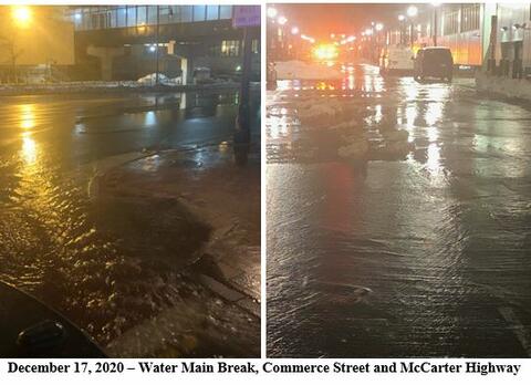 Newark Police officials are reporting that a water main break at the intersection of Commerce Street and McCarter Highway has resulted in the closure of Commerce Street from McCarter Highway to Mulberry Street today.