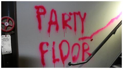 He was arrested and turned over to the East Orange Police Department. Officers found substantial damage to the building and numerous spray-painted directional signs for partygoers.