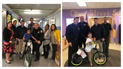 According to Newark Police, 3rd Precinct Executive Officer Lieutenant A. Cruz, along with 3rd Precinct Community Service Officer M. Silva and School Resource Officer A. Hart, awarded bicycles to the two lucky winners of the best costume contest at Hawkins Street School.