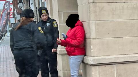More than a half-dozen Newark Police officers focused their attention on the lobby of a building during an investigation into a violent robbery in the city’s North Ward this morning.