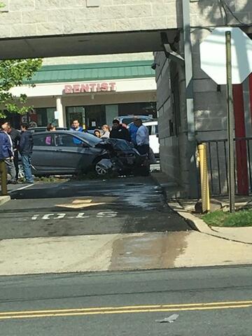 According to preliminary reports, the woman somehow lost control of the vehicle at around 10 a.m. and collided into the Santander Bank on South Elmora Avenue.