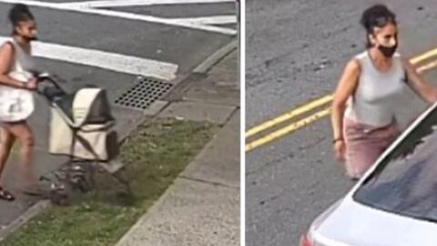 A female suspect, seen pushing a baby stroller, allegedly approached a parked vehicle, attempted to open its doors, and gained access through an unlocked driver’s side door.