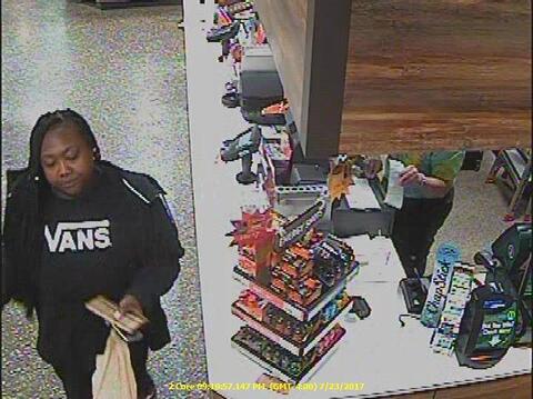 On July 23, a black female, wearing dark pants and a "VANS" tee shirt was captured on video surveillance using the stolen debit card at a Wawa in Vincentown. The suspect is then seen departing in an unknown red, four door sedan.