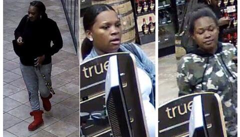 Police are looking for three women who they say walked out of a local business with liquor bottles without paying.
