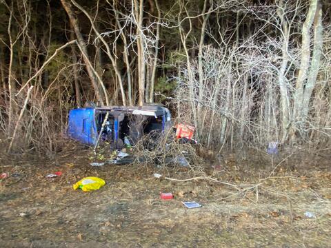 This caused the vehicle to overturn multiple times, during which, it crossed both lanes of travel before coming to rest in the wooded area adjacent to the eastbound lane of travel.