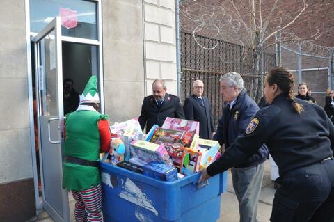 Sheriff Armando Fontoura with his officers and elves today delivered more than 5,000 holiday gifts throughout Essex County.