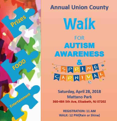 As part of Autism Awareness Month, the Union County Board of Chosen Freeholders through the Office for People with Special Needs invites residents to come out and participate in Union County’s 1st Annual Walk for Autism Awareness and Spring Carnival.