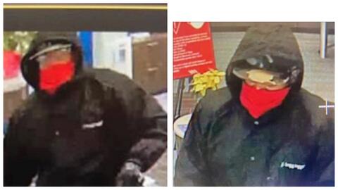 Officials said the suspect is approximately 6’tall, around 30-years-old, and wore a black jacket, red mask, and army hat.