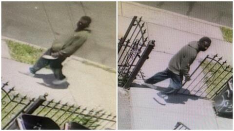 According to police, the suspect is described as a dark skin male wearing a green sweatshirt with a hood, green track pants, and white sneakers.